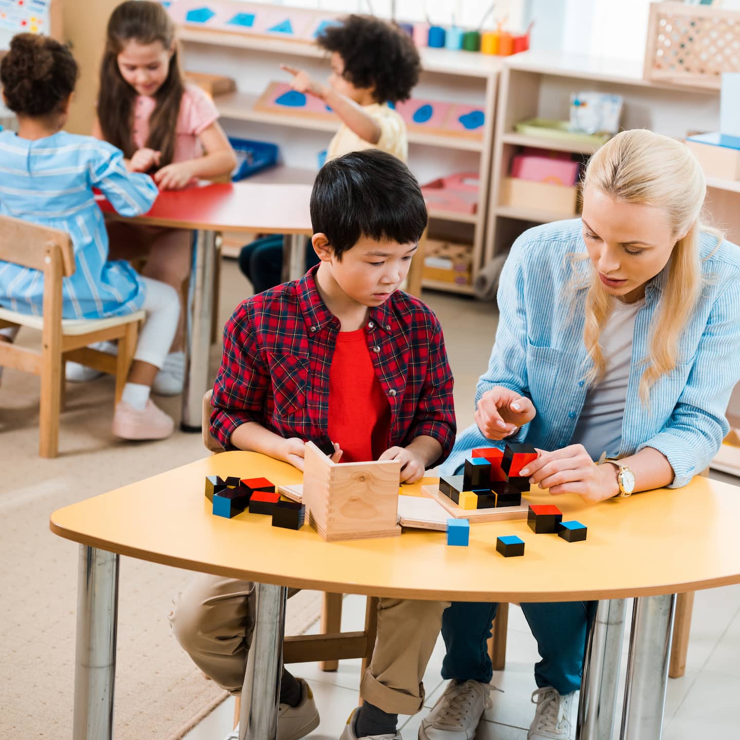 Kids solve puzzles and build with blocks to improve problem-solving and motor skills.